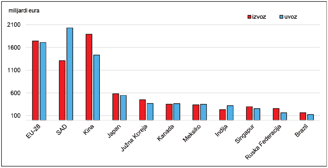 Glavni sudionici u međunarodnoj trgovini robom 2016. godine