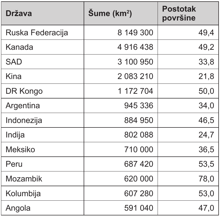 Tab. 7. Udio površine pod šumama u odabranim državama 2016. godine