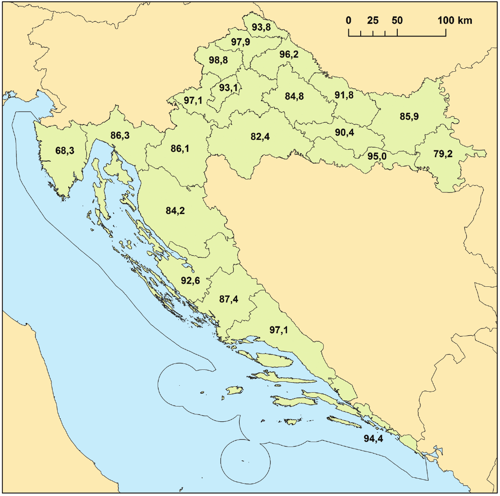 Koje je ime županije Primorske (Jadranske) Hrvatske s najvećim udjelom Hrvata 2011. godine?