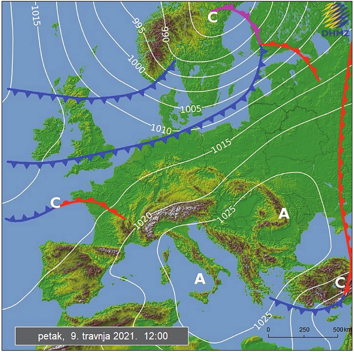 B. Na dijelu istočnoga Sredozemlja hladna fronta dostigla je toplu.