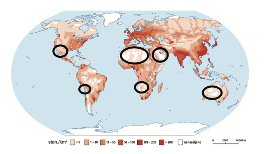 Objasnite jednom rečenicom utjecaj genetskoga tipa reljefa na naseljenost zaokruženih područja na geografskoj karti.