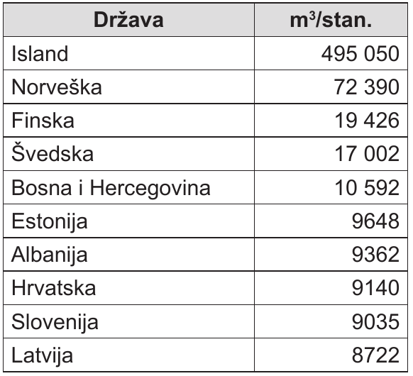 Tab. 3. Interno obnovljivi vodni resursi u odabranim državama Europe 2017. godine
