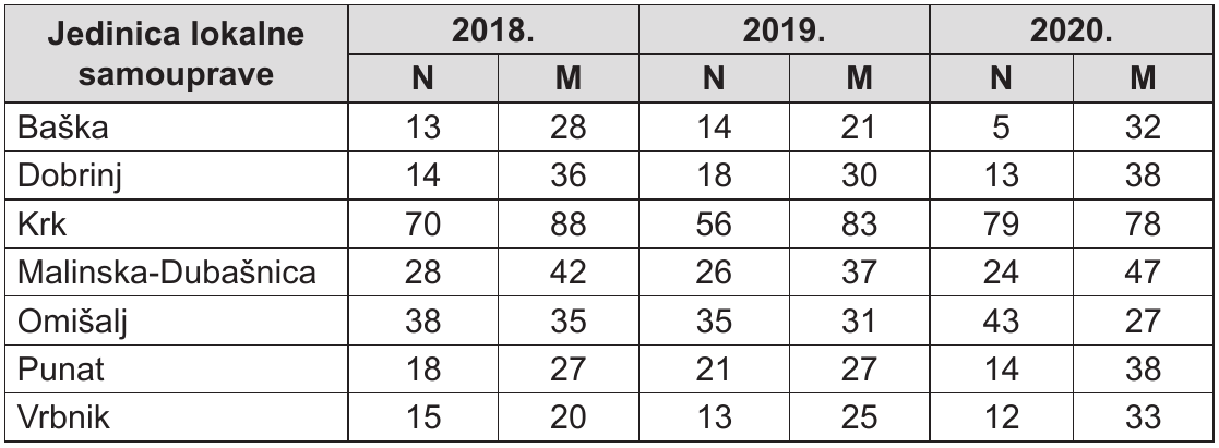 Tab. 5. Prirodno kretanje stanovništva u jedinicama lokalne samouprave na otoku Krku2018., 2019. i 2020. godine