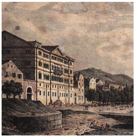 Zgrada na priloženim fotografijama u 18. stoljeću bila je tvornica šećera izvan grada. Danas je dio centra grada i u njoj se, u funkcionalnoj zoni pretežito poslovne namjene, nalazi Muzej grada Rijeke. Koju je funkciju taj prostor imao u 18. stoljeću?
