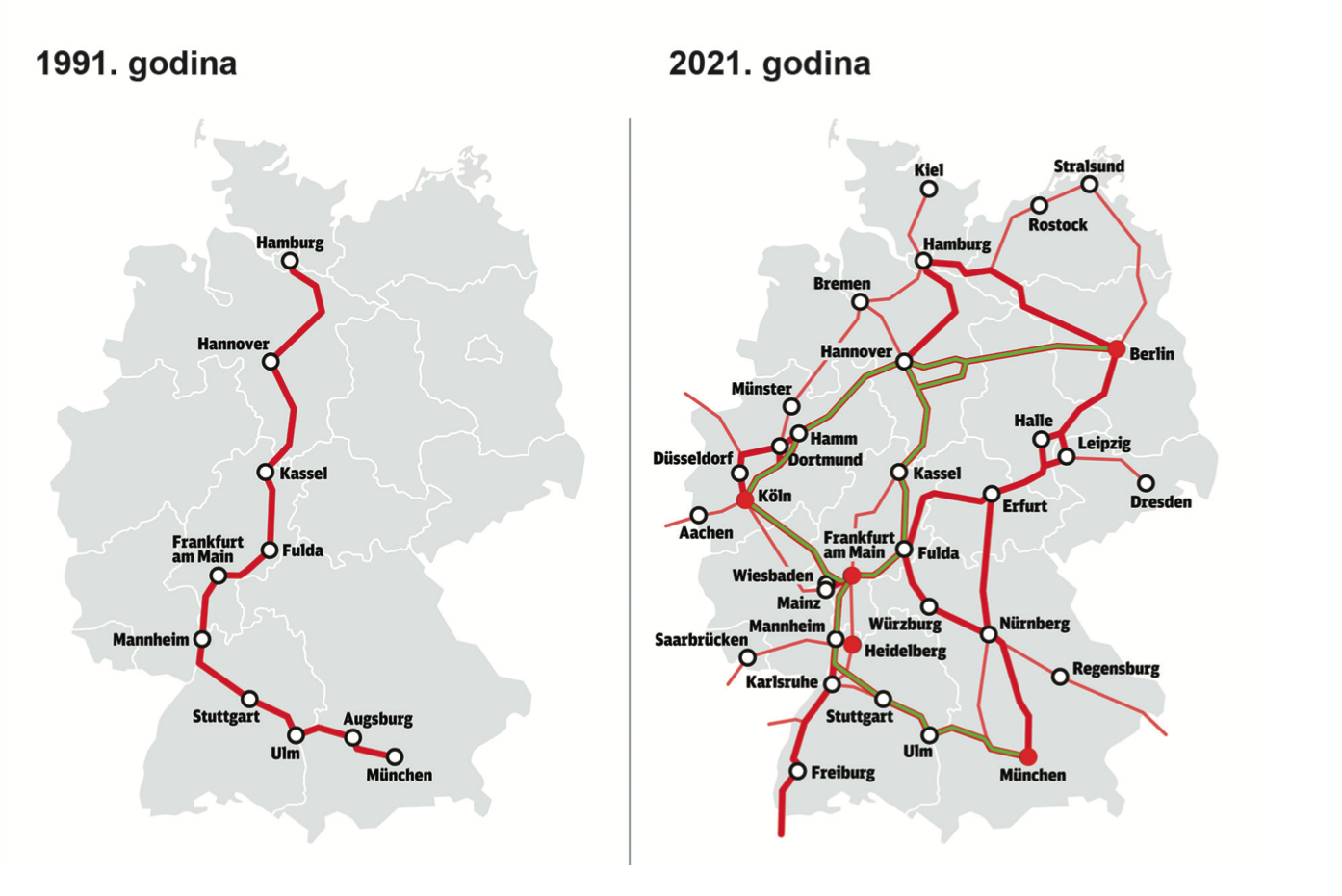 Priložena geografska karta prikazuje razvoj jedne prometne mreže u Njemačkoj.