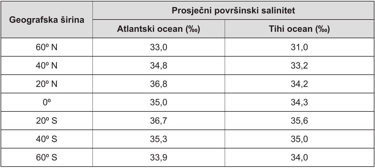 Atlantski ocean (%) | Tihi ocean (%) | |