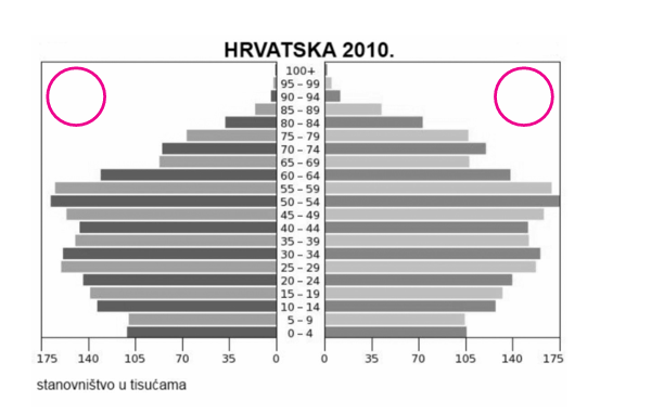 Sljedeće zadatke riješite s pomoću priložene grafičkog prikaza dobno-spolnog sasta stanovništva.