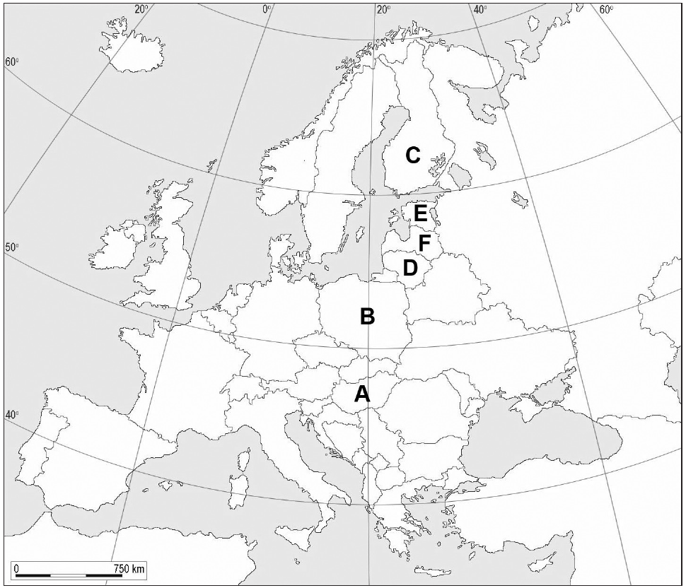 Sljedeće zadatke riješite s pomoću priložene geografske karte Europe na kojoj su slovima od