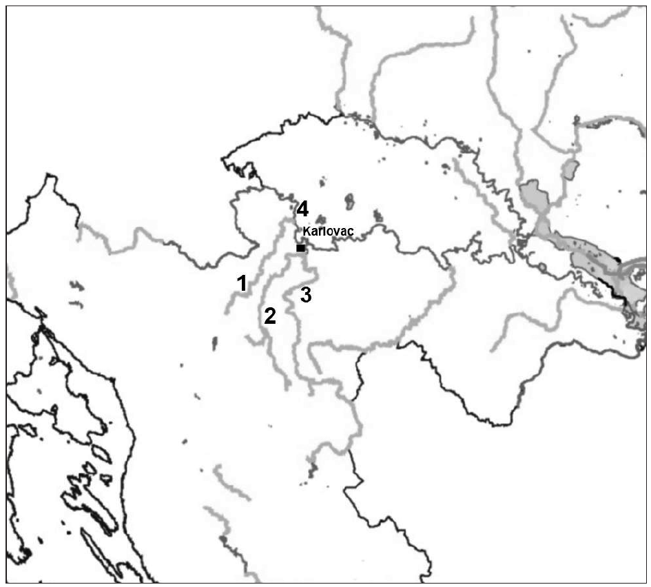 Upišite na crte imena rijeka označenih na karti brojevima