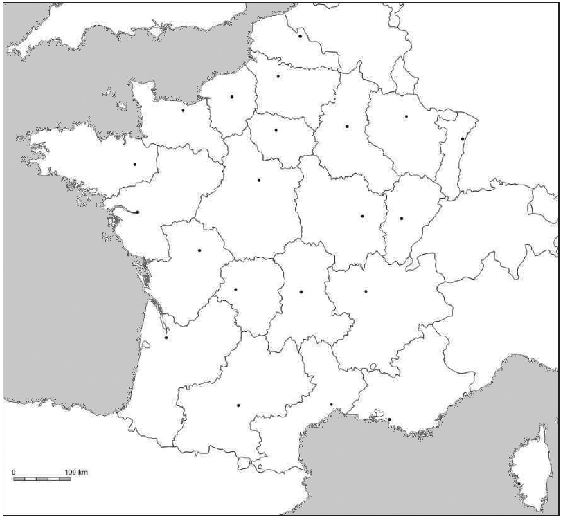 Zadatak riješite upisujući tražene brojeve na priloženu geografsku kartu Francuske.
