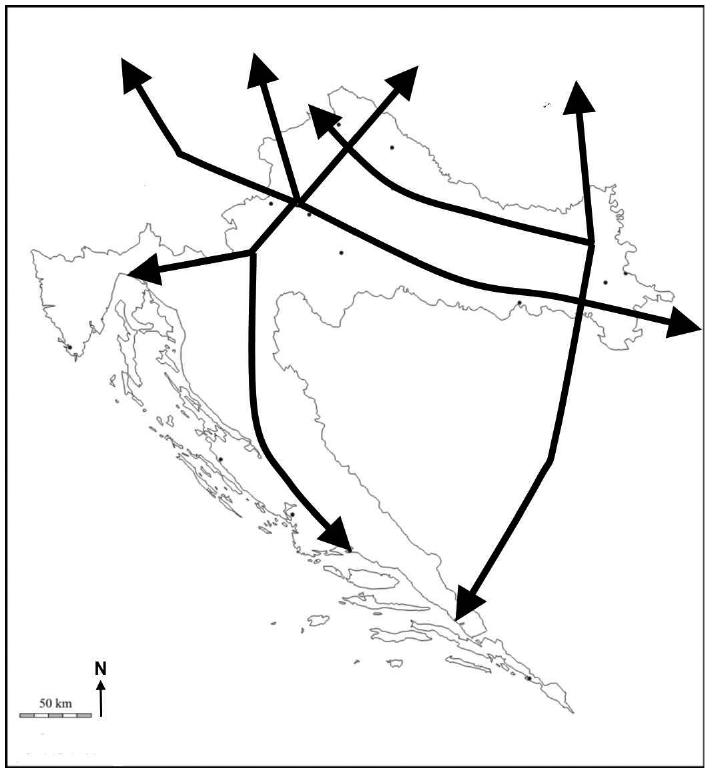 Zadatak riješite s pomoću priložene geografske karte prometnih koridora.