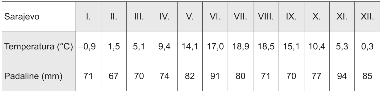Na temelju podataka u priloženoj tablici izračunajte tražene podatke i dopunite rečenice.