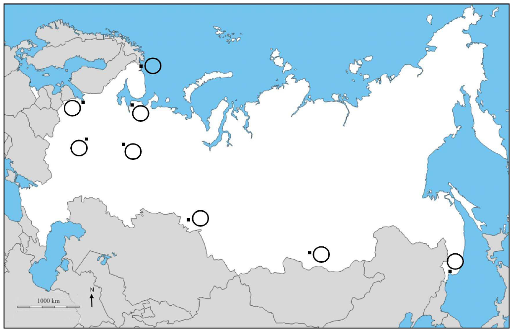 Sljedeće zadatke riješite s pomoću priložene karte Ruske Federacije na kojoj su kružićima označeni odabrani gradovi.