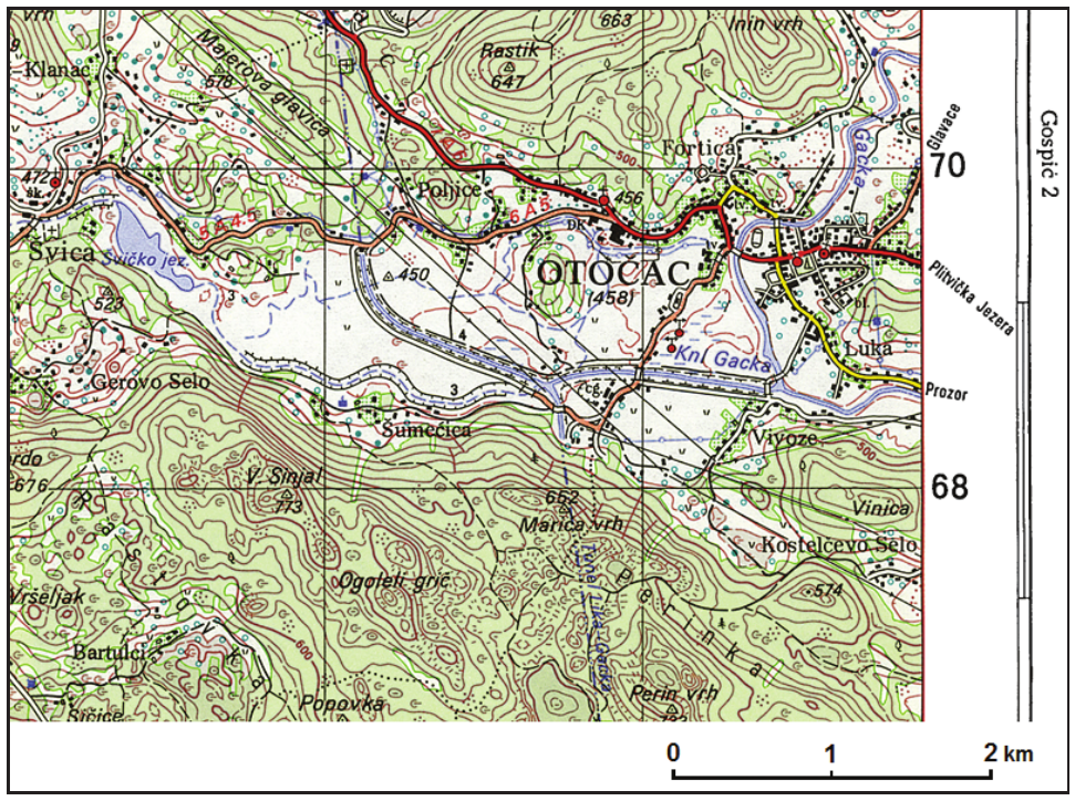 Pozorno promotrite ekvidistancu i pravokutnu mrežu na priloženome isječku topografske karte.