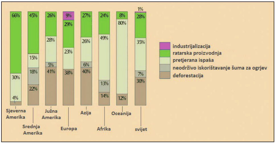 Obrazložite koji je sektor ljudskih (gospodarskih) djelatnosti najodgovorniji za degradaciju tla u svijetu i koji su glavni uzroci degradacije tla u svijetu te usporedite i obrazložite uzroke degradacije tla u Sjevernoj Americi i Oceaniji.