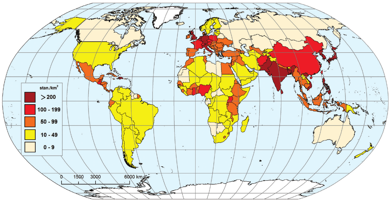 države s općom gustoćom naseljenosti većom od 200 stan.