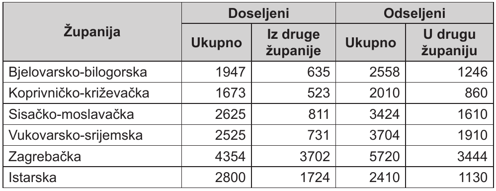 Tab. 4. Migracija stanovništva u odabranim županijama Republike Hrvatske 2015. godine