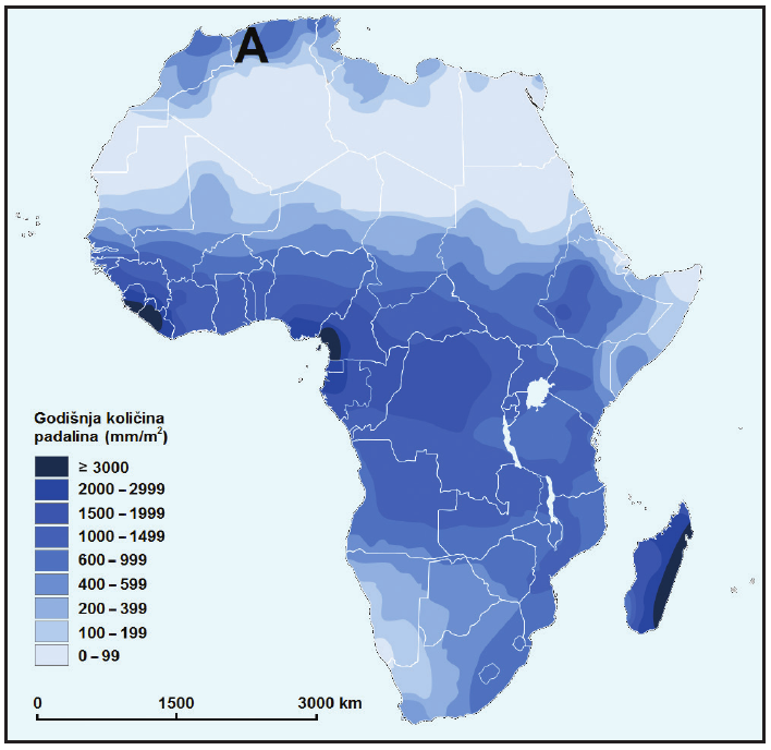 Koja vrsta padalina prema načinu nastanka prevladava na području označenome na karti slovom