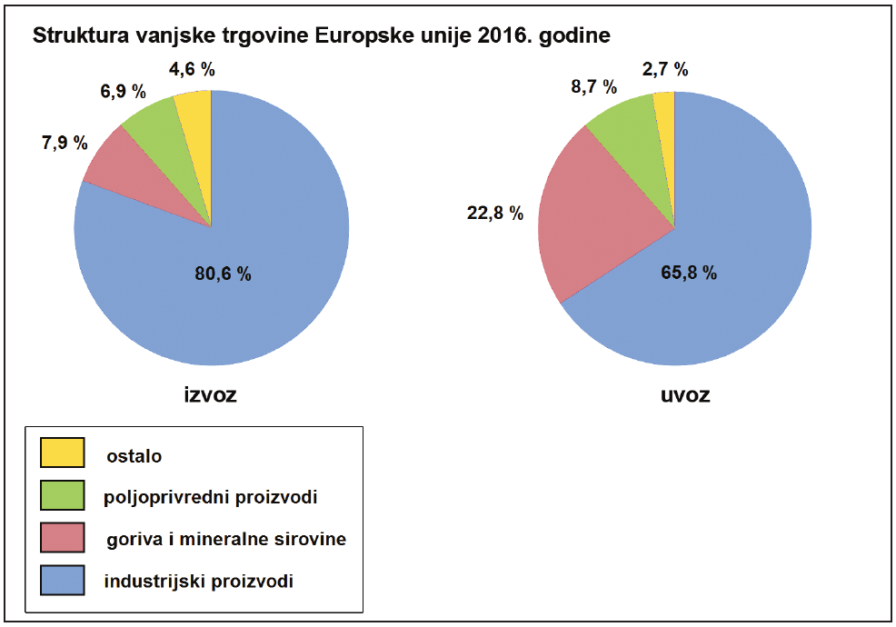 Koja je skupina proizvoda 2016. godine imala oko tri puta veći udio u uvozu nego u izvozu?