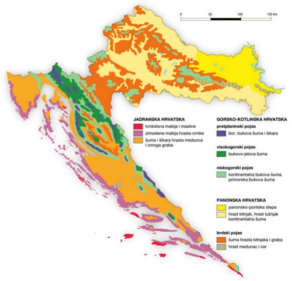 C. u području gorskih i pretplaninskih bjelogoričnih i crnogoričnih šuma