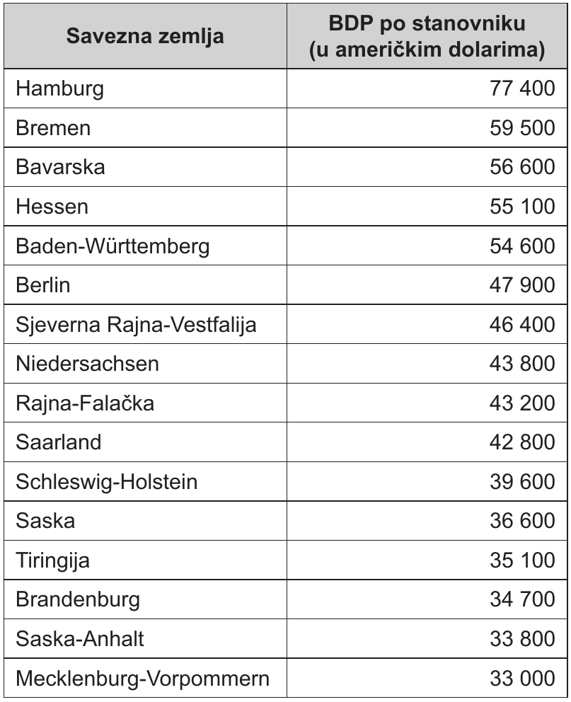 Tab. 5. Dohodak po stanovniku u njemačkim saveznim zemljama 2018. godine