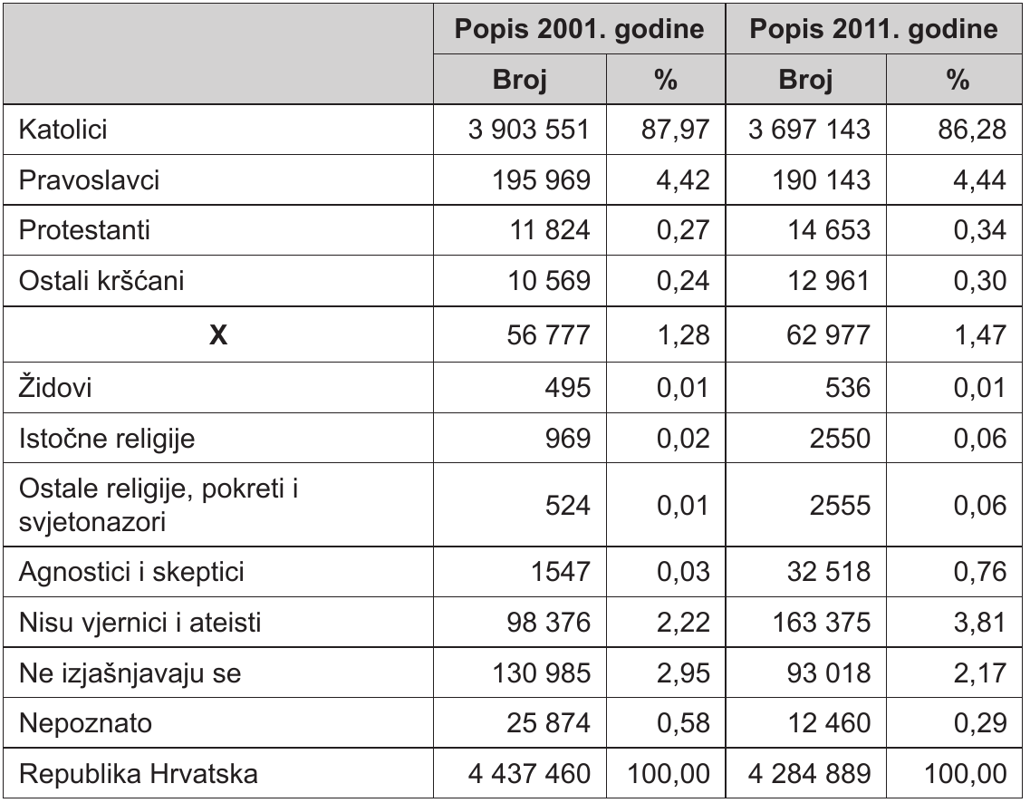 Tab. 10. Stanovništvo Republike Hrvatske prema vjeri 2001. i 2011. godine