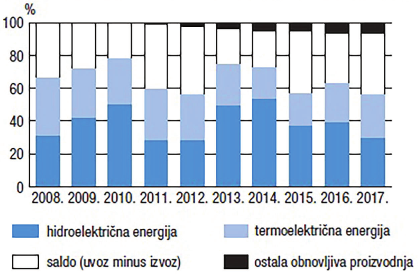 Struktura raspoložive električne energije 2008. - 2017. godine