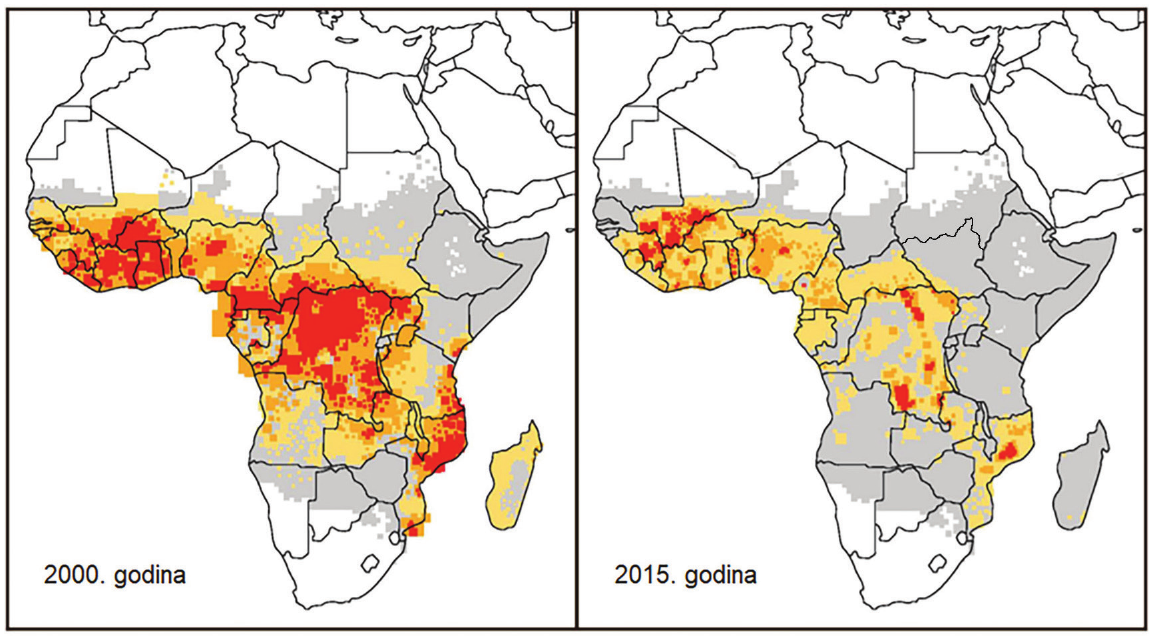 U kojoj je od navedenih država od 2000. do 2015. godine povećana površina područja s visokim rizikom od malarije?