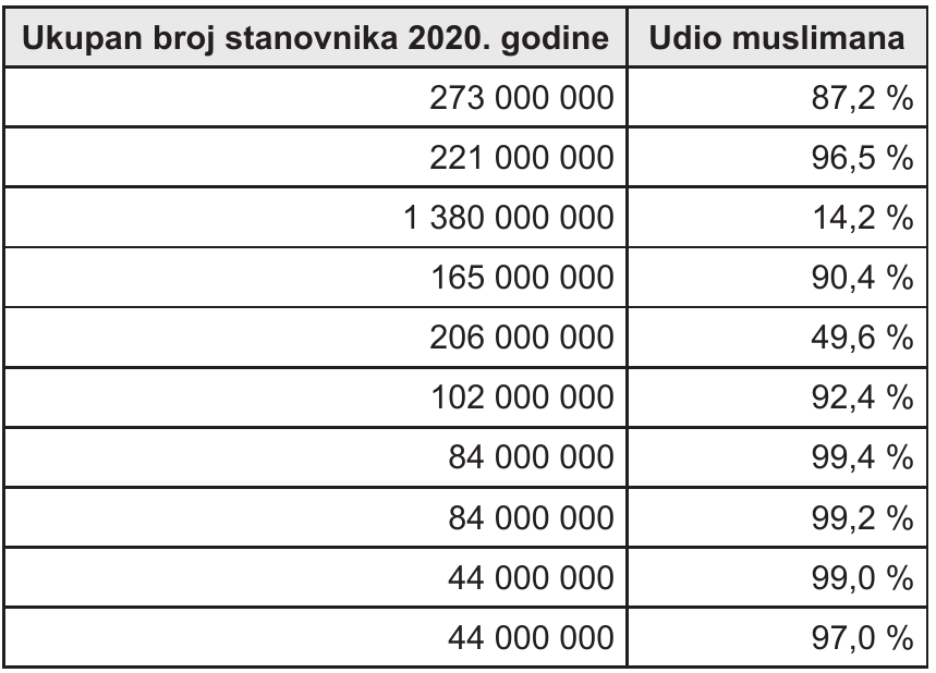 Tab. 3. Deset najmnogoljudnijih muslimanskih država 2019. godine