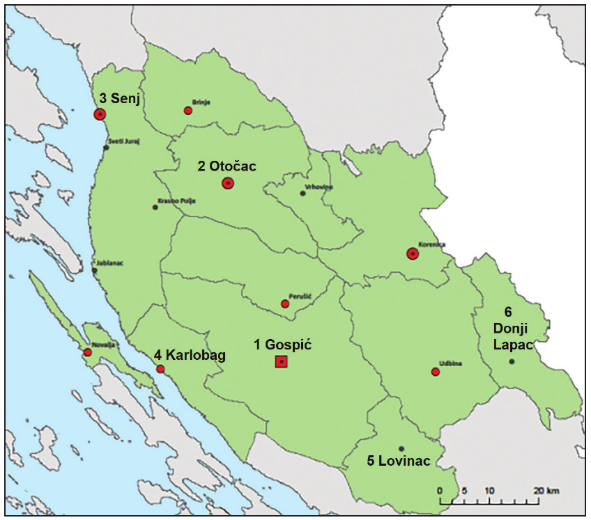 Kojim je brojem označen područni centar u Ličko-senjskoj županiji?