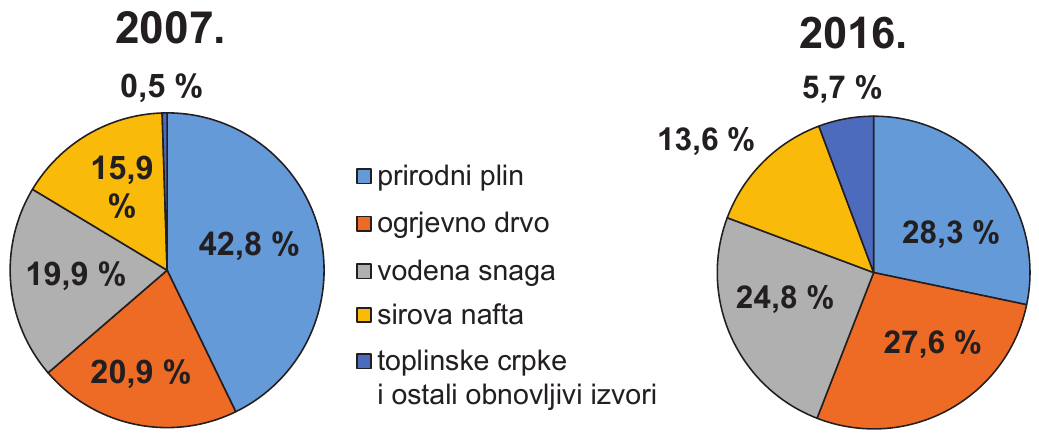 Koji je naziv izvora energije kod kojega je zabilježena najveća promjena (u postotnim bodovima) u proizvodnji primarne energije?