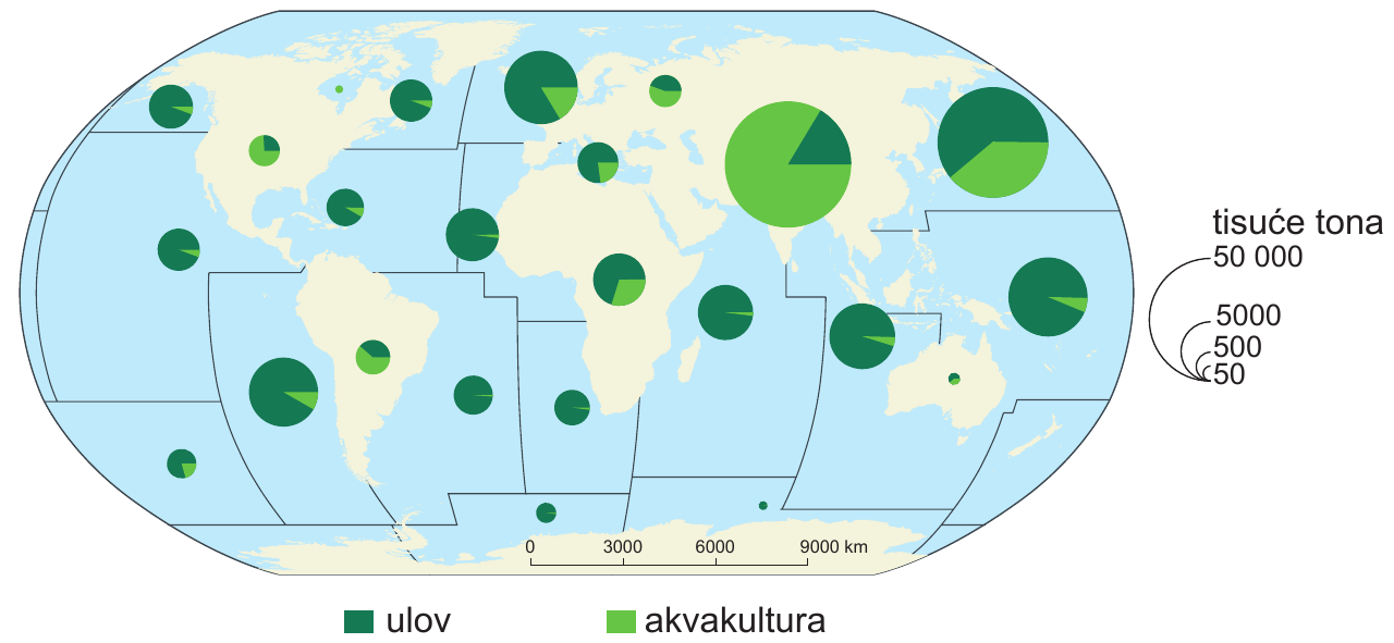 Koji je dio Atlantskoga i Tihoga oceana iscrpljen ribolovom pa akvakultura ima važan udio u ribarstvu?