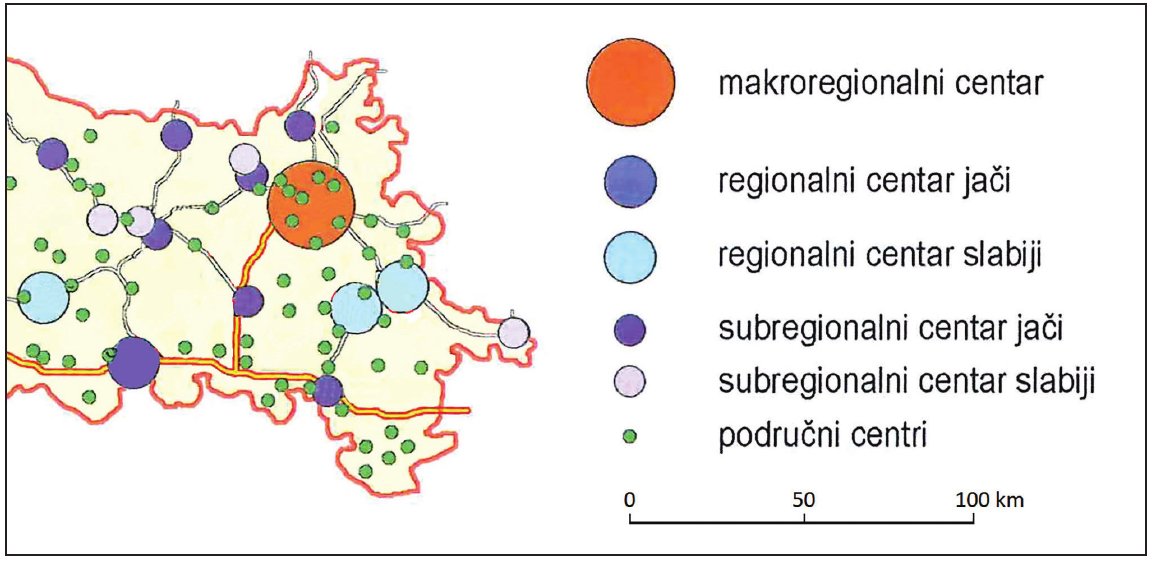 Koje je ime najzapadnijega slabijeg regionalnog centra na geografskoj karti?
