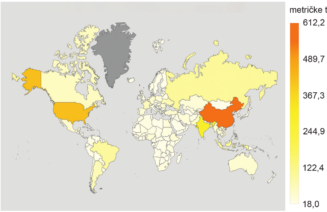 Rang | Država | Tone | % od pet najboljih |