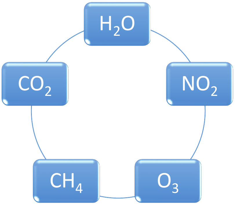 Koja je uloga plinova čije su kemijske formule prikazane na grafičkome prilogu u procesu nastanka efekta staklenika?