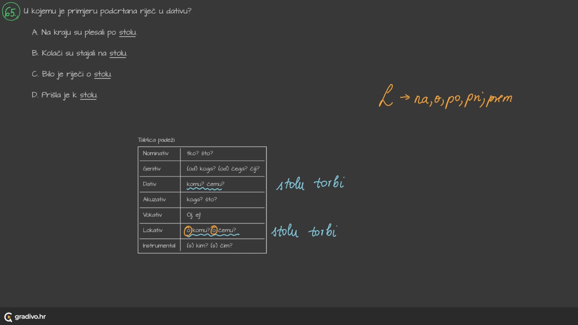 D. Prišla je k stolu.