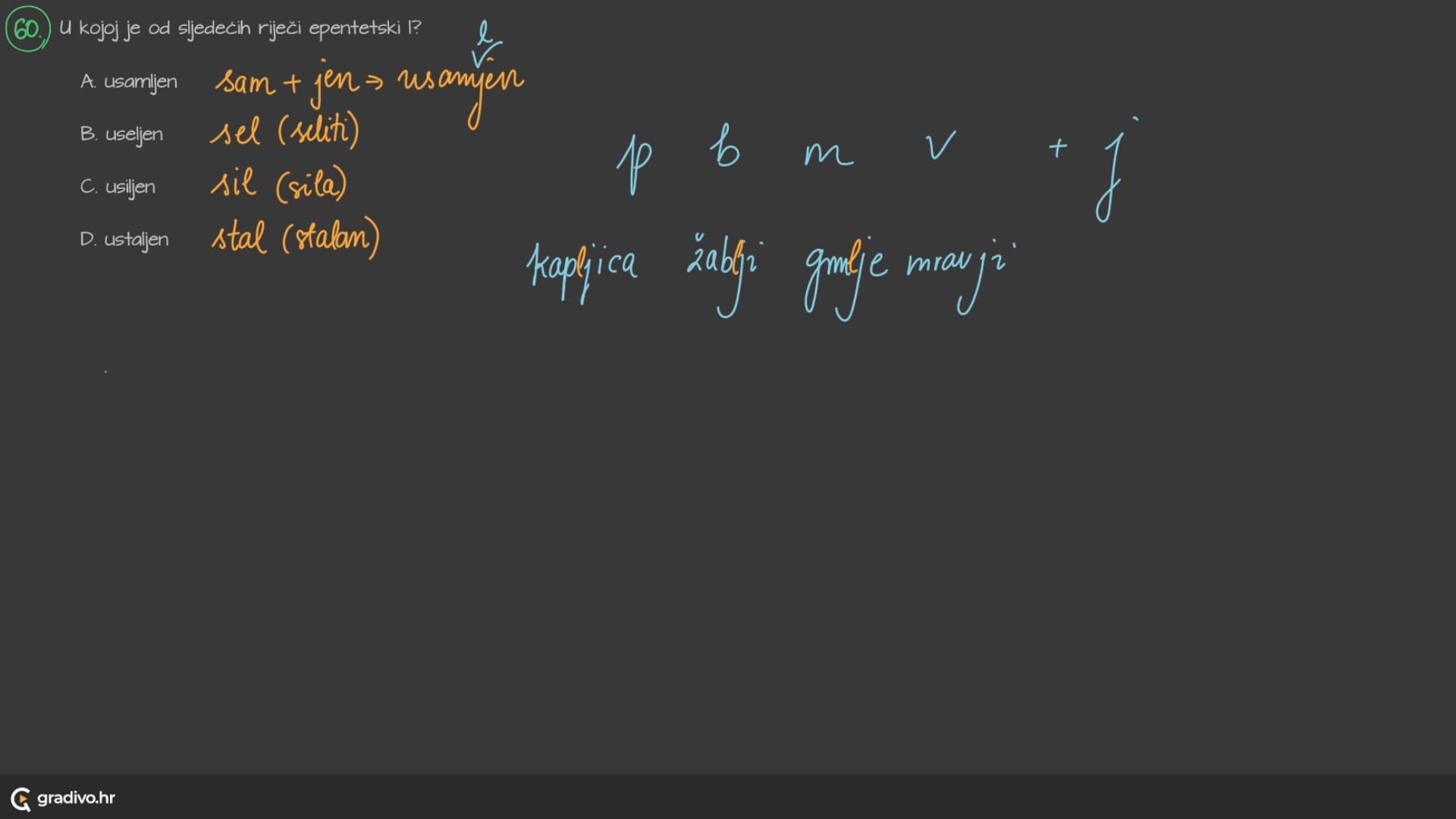 C. usiljen