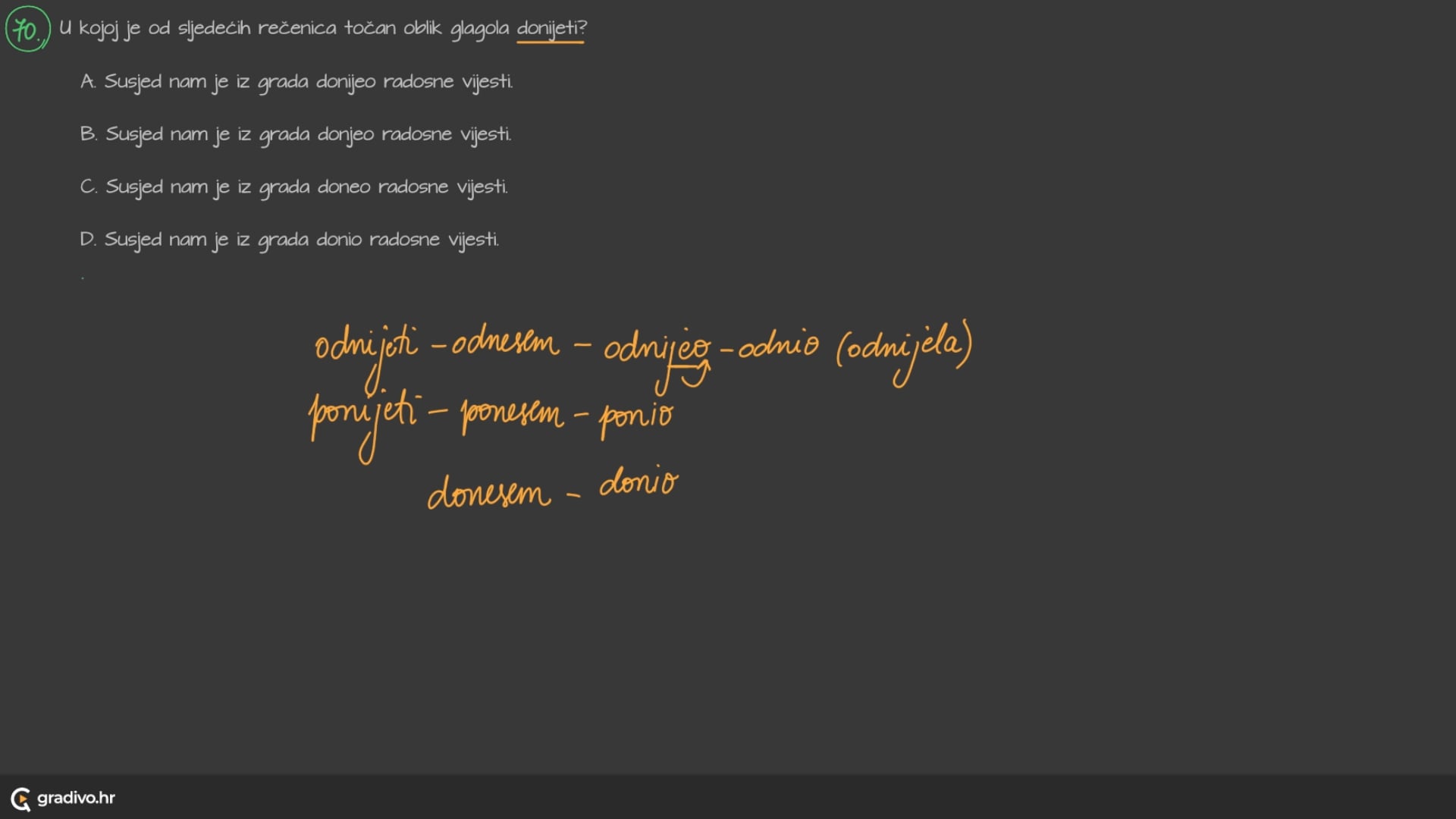 B. Susjed nam je iz grada donjeo radosne vijesti.