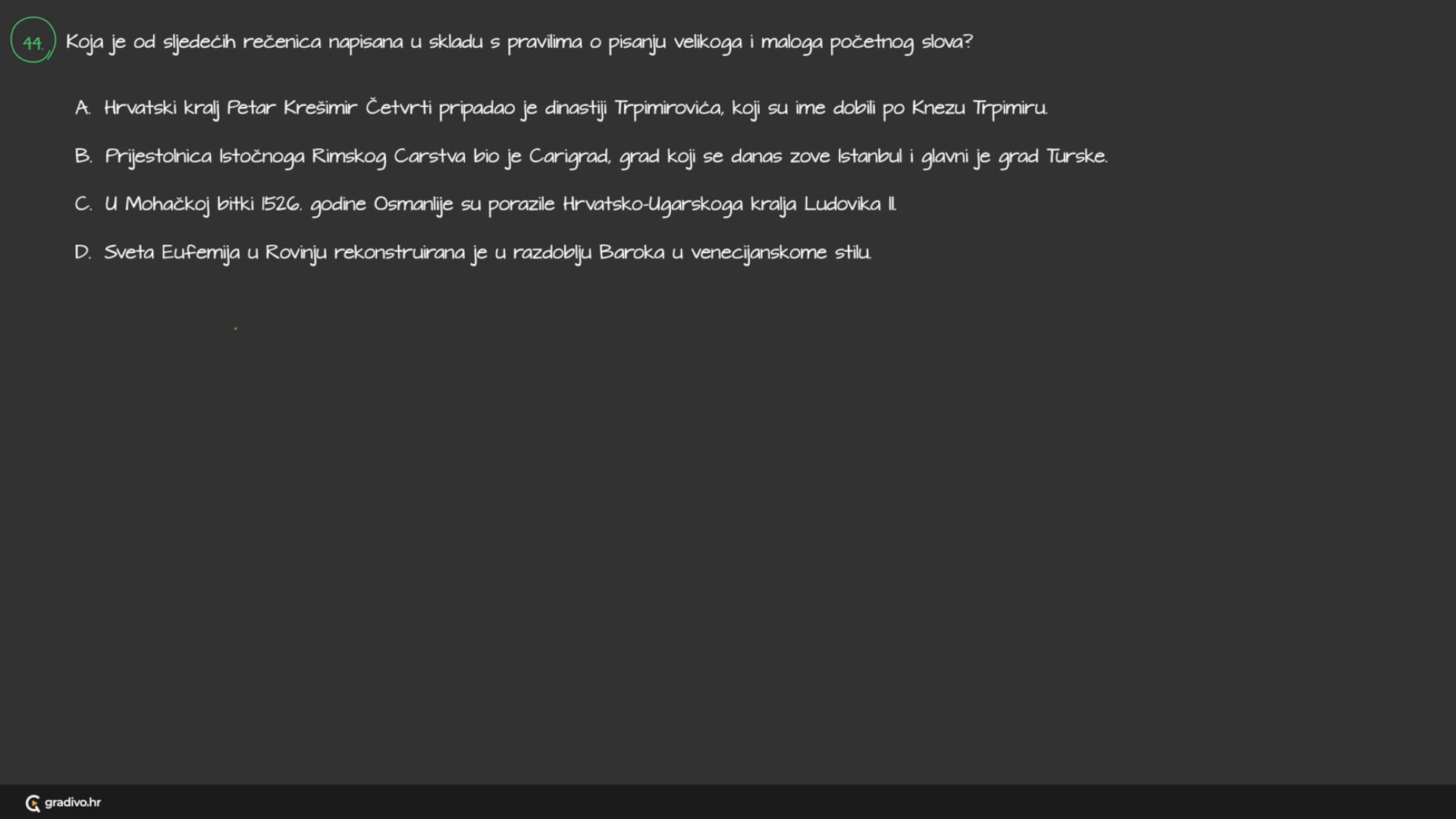 B. Prijestolnica Istočnoga Rimskog Carstva bio je Carigrad, grad koji se danas zove Istanbul i glavni je grad Turske.