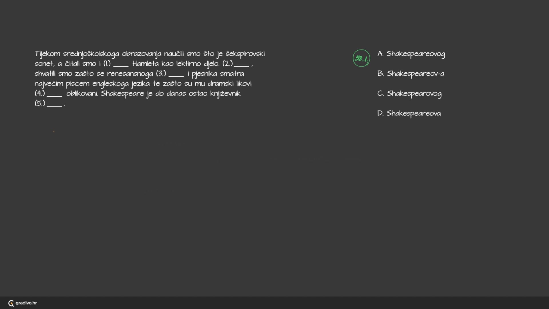 oblikovani. Shakespeare je do danas ostao književnik (5.)
