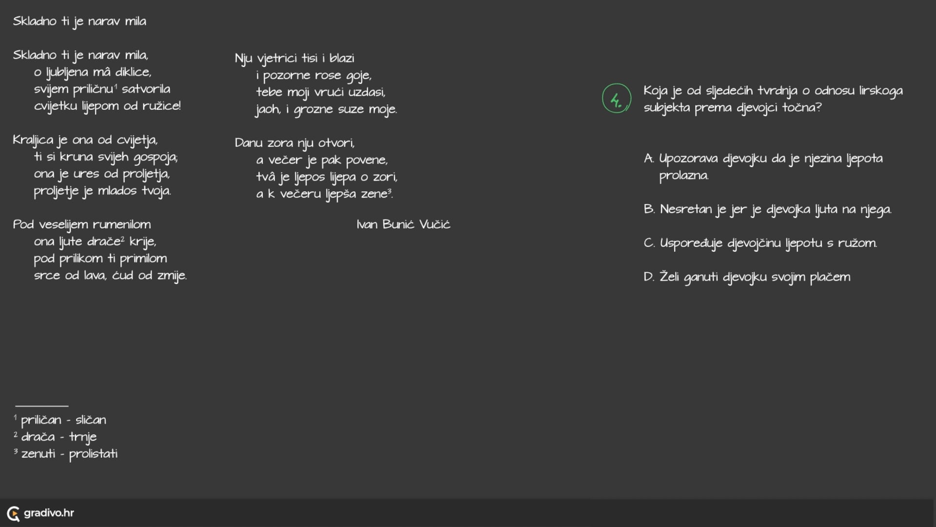 Koja je od sljedećih tvrdnja o odnosu lirskoga subjekta prema djevojci točna?