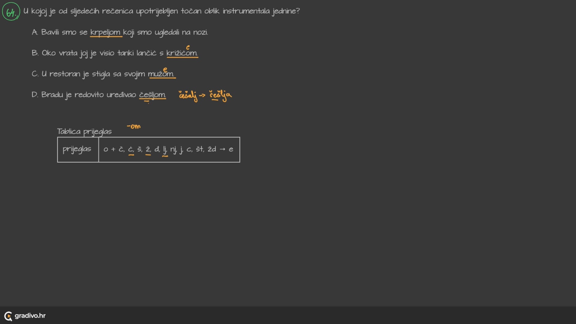 B. Oko vrata joj je visio tanki lančić s križićem.