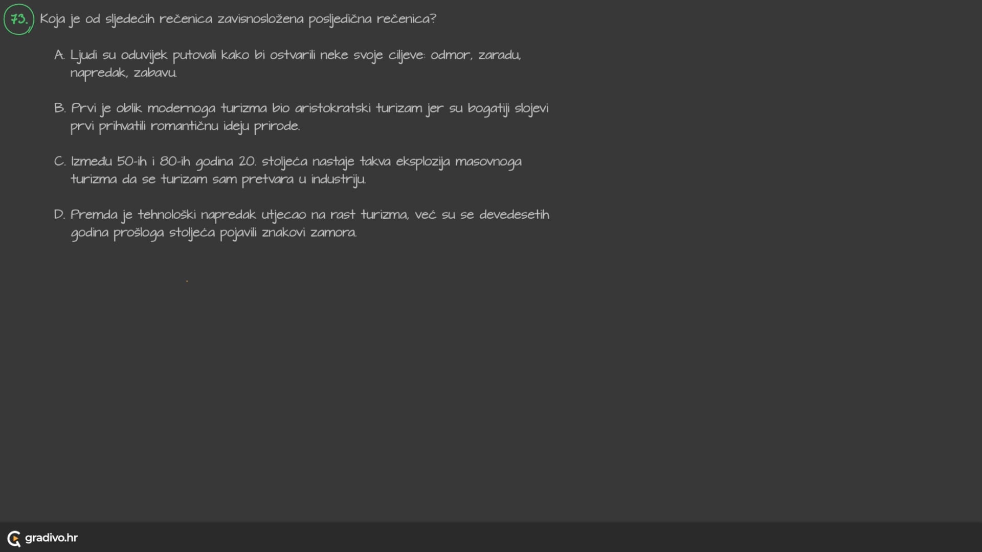 D. Premda je tehnološki napredak utjecao na rast turizma, već su se devedesetih godina prošloga stoljeća pojavili znakovi zamora.