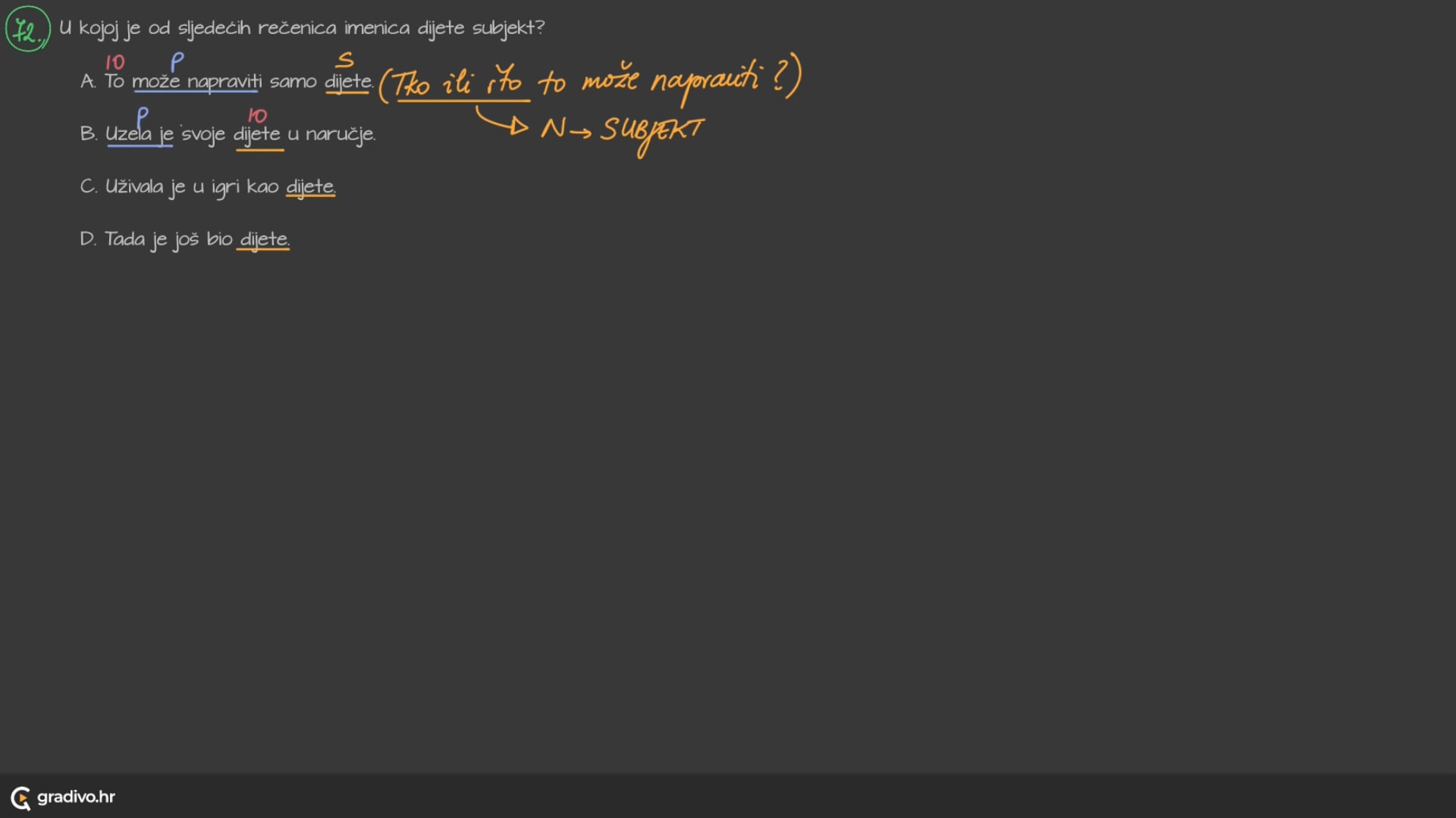 - odgovara na pitanje u nominativu (Tko? Što?)