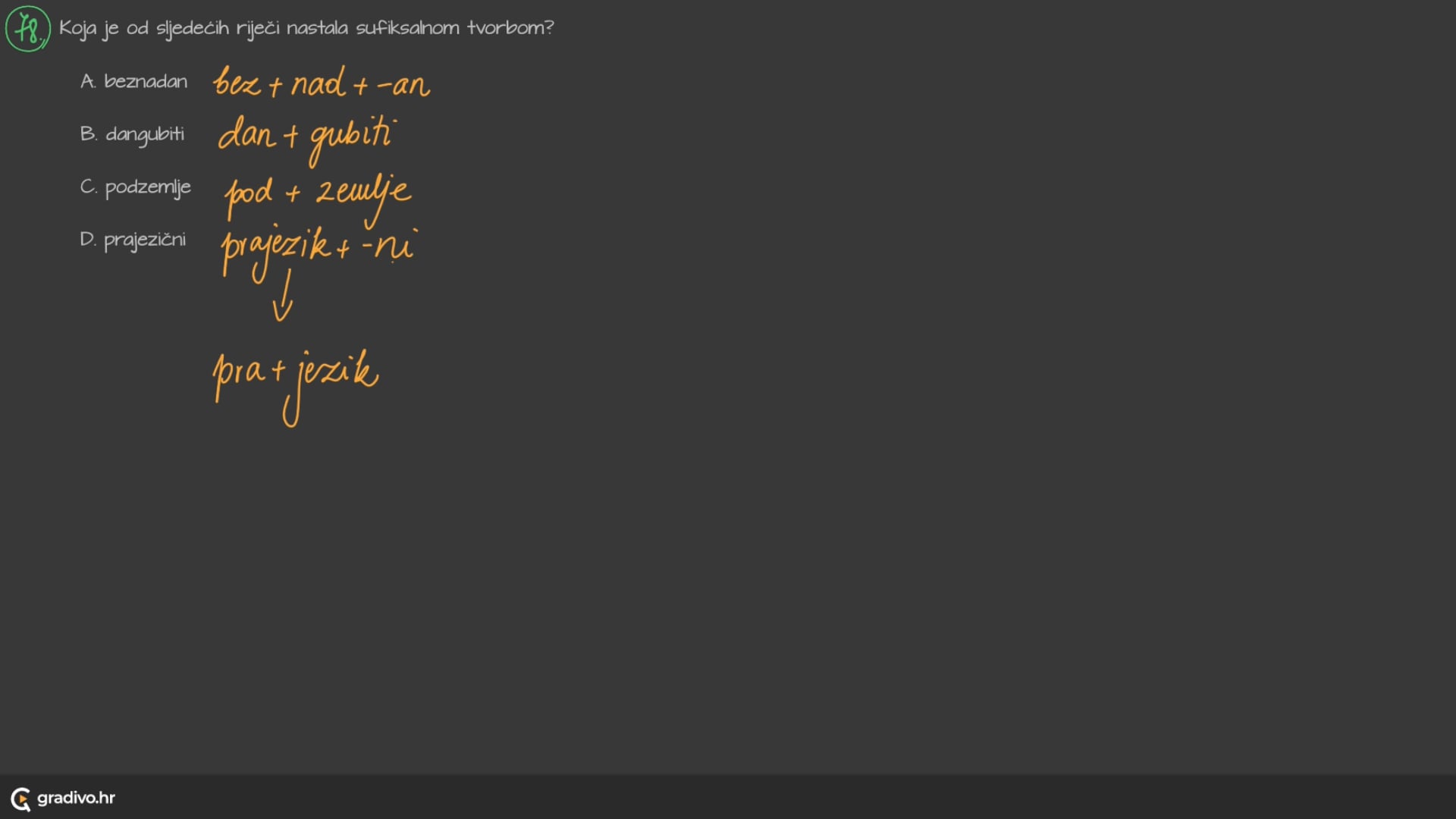 - tvorbene riječi: pjev-ač, o-pjev-a-ti, slik-ar-ic-a, sob-o-slik-ar