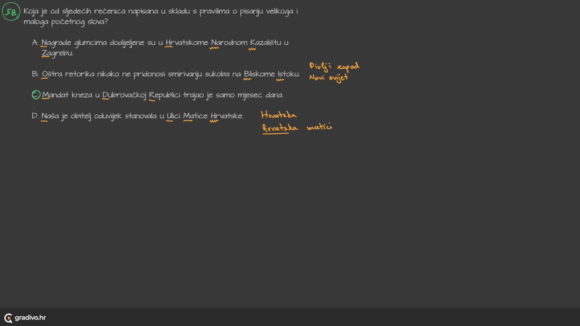 - zemljopisni pojmovi: Hrvatsko primorje, Gorski kotar, Indijski ocean, Sjeverno more, Bliski istok, Župa dubrovačka, Žumberačko gorje, Sjeverni pol, Apeninski poluotok, Dugi otok, Panonska nizina