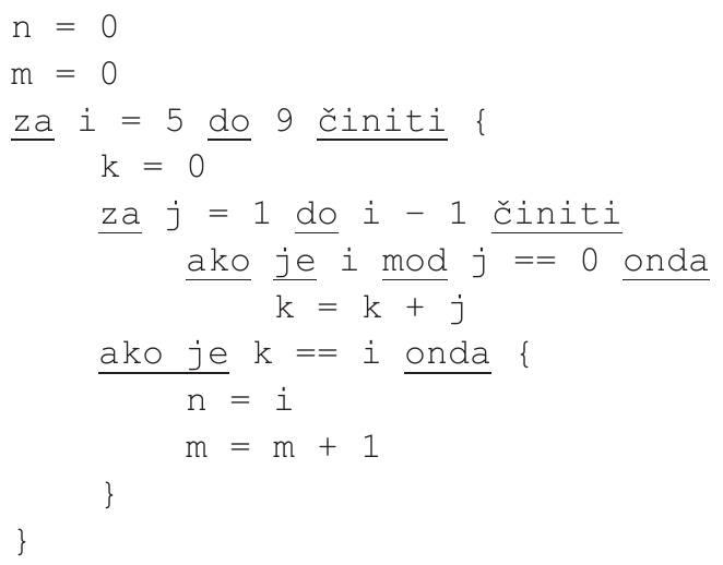 B. Kolika je vrijednost varijable $m$ nakon izvođenja zadanoga dijela programa?