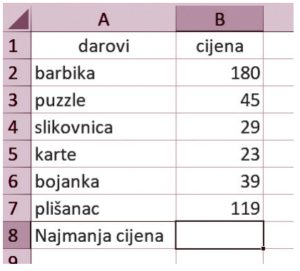 Koristeći se funkcijom napišite formulu uz pomoć koje ćete odrediti cijenu najjeftinijeg dara.