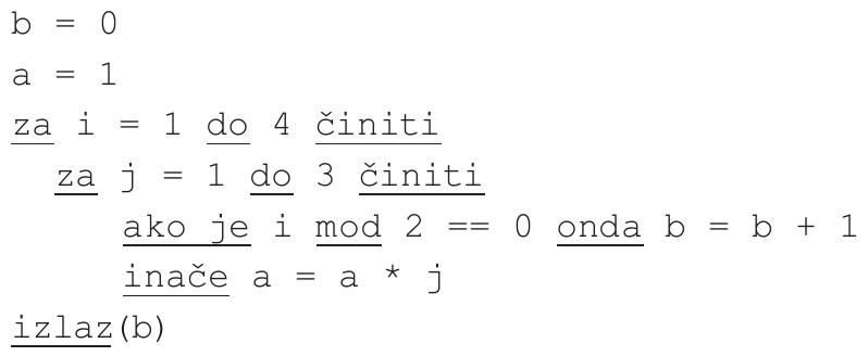 B. Kolika je vrijednost varijable a na kraju izvođenja zadanoga programa?