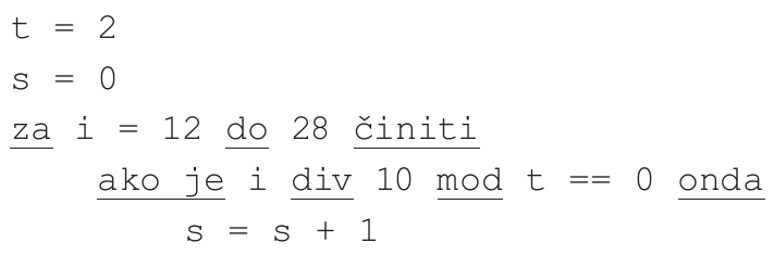 B. Kolika će biti vrijednost varijable s nakon izvođenja zadanoga dijela programa ako je varijabla $t$ = 1?